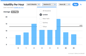 نوسان هر جفت‌ارز در جلسه لندن (برحسب pip)